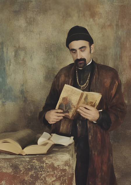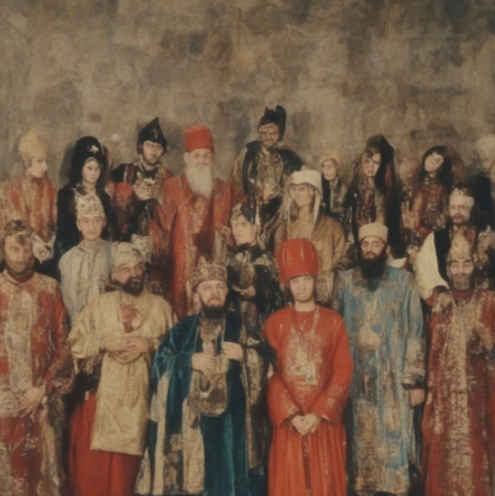 Итоговая серия изображений, созданных с помощью обученной модели, представляет собой свободное визуальное продолжение мира «Цвета граната» Сергея Параджанова. Генерации не просто воспроизводят композиции фильма — они аккуратно развивают заложенные в нём эстетические и культурные мотивы, предлагая «параджановские» сцены, которых в фильме не было, но которые могли бы в нём появиться.
