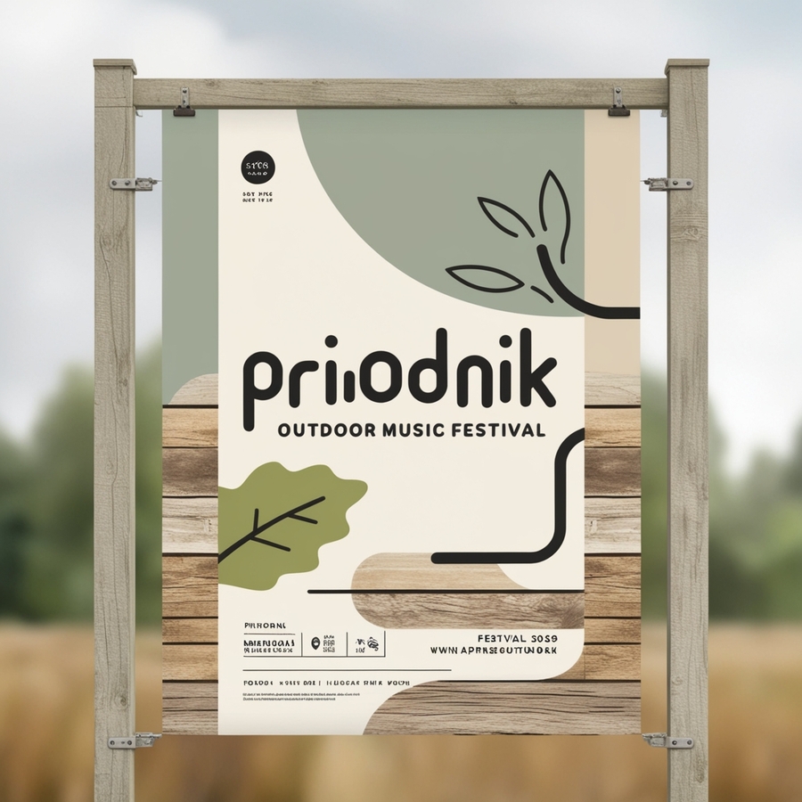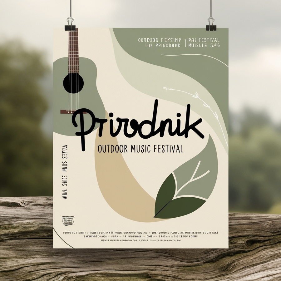 imagine prompt: create an advertising poster in a natural minimalist style in natural shades for an outdoor music festival called Prirodnik