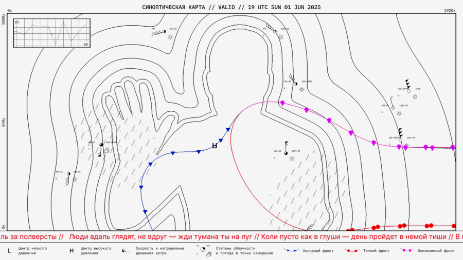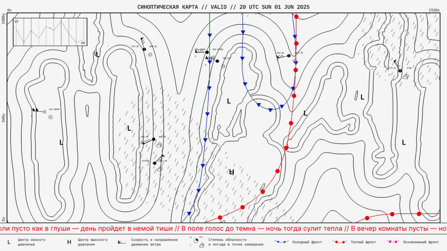 Работа представляет собой автономную метеостанцию, преобразующую видеосигнал в набор реактивных метеопоказателей на синоптической карте галереи