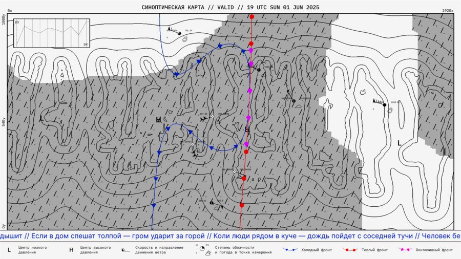 Однако когда вокруг все полнится приметами, рассматривается сквозь призму функции, легко забыть что примету можно сделать и из человека. Что он находится в ровно такой же связи с атмосферой и погодой вокруг, существует в том же мире и является равнозначной составляющей биосферы. В работе создается сторонний взгляд, воспринимающий человека сквозь эту призму связи с миром