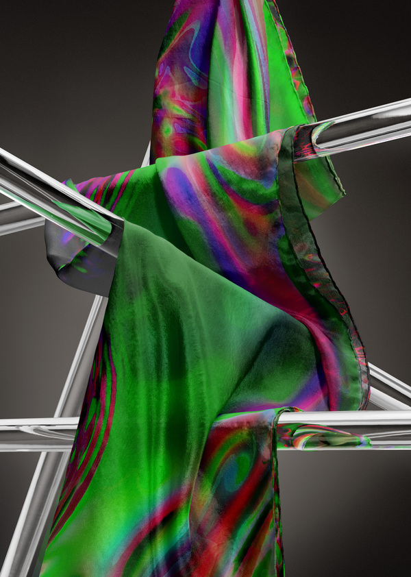 Chuma — это платки с генеративной графикой. Их принты вдохновлены разноцветными пятнами от разлившегося бензина, которые часто можно увидеть на асфальте. Для каждого платка создан свой неповторимый узор.
