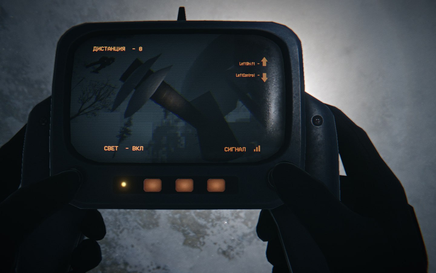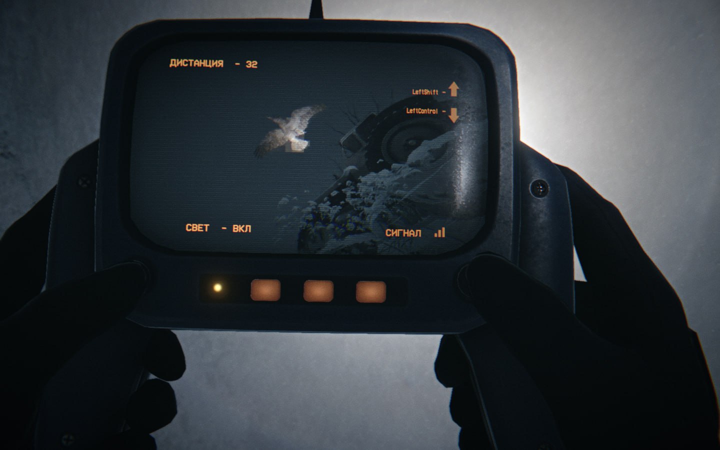 в первой локации, стоя на улице у входа, я пытался протолкнуть дрон сквозь решётку канализационной трубы — и из любопытства ударил его гаечным ключом. дрон мгновенно исчез с экрана, проскользнув под снег, провалившись сквозь землю — и вот перед вами уже редкие примеры подземной дрон-фотографии: два автопортрета, внутренность «тарелки» и одна из разбросанных по окрестности мёртвых птиц, которую мне удалось вернуть на небо.