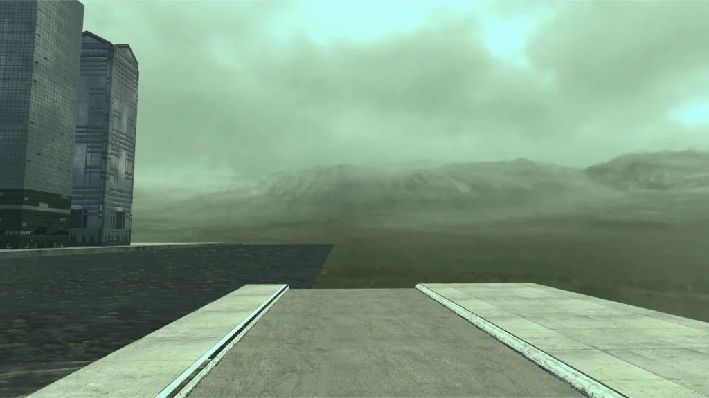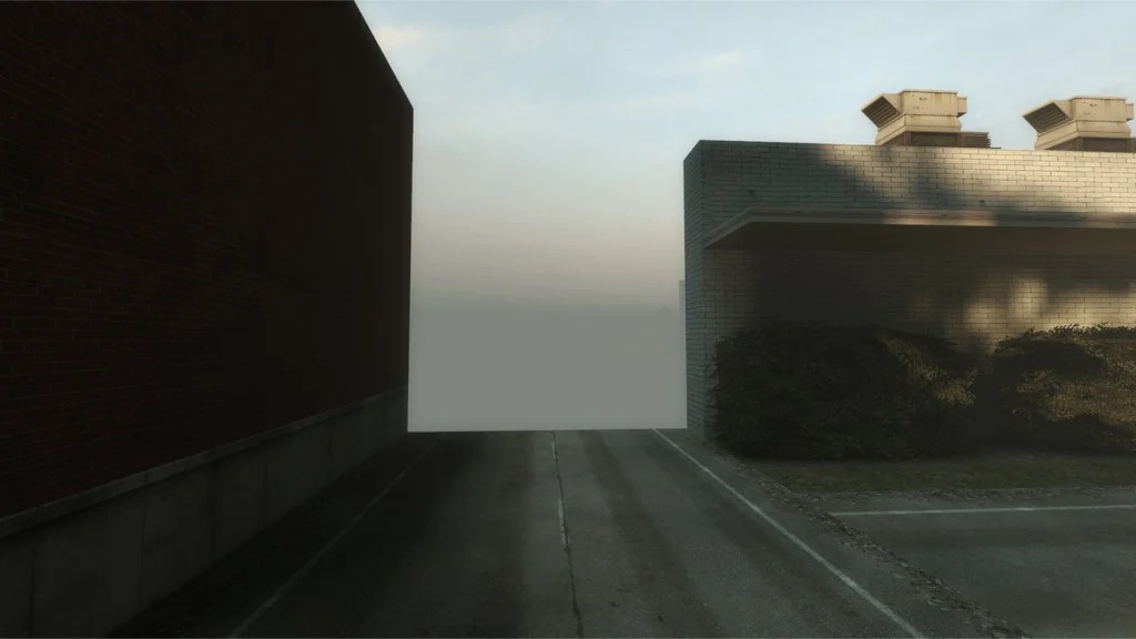 This series of photographs originates from four popular first person shooter games (Left 4 dead 2, Half-life 2, counter-strike and modern warfare 2) Unlike you might think the virtual world is not round like the physical world but flat with hard-cut edges. These photographs show us how the virtual world ends. By taking them out of the context of the game we get a new chance to experience them with a different meaning. The series originates from 2010.