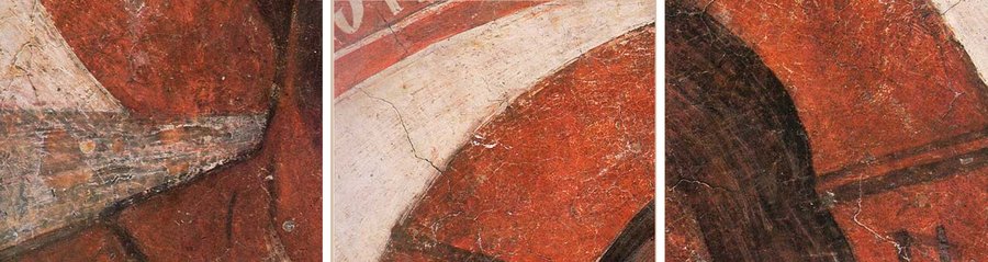 Феофан Грек. Фрагменты иконы «Донская икона Божьей Матери». Государственная Третьяковская галерея, Москва. Около 1392.