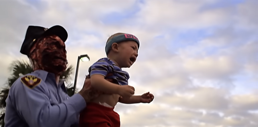 Маленького героя окружают чудовищные существа, гротескно искаженные образы, пугающие его. Ребёнок беззащитен, его собственной матери как будто совершенно безразличен его плачь и беспокойство, благодаря съемке на одном уровне с героем подчёркивается субъективность и безысходность ситуации.
