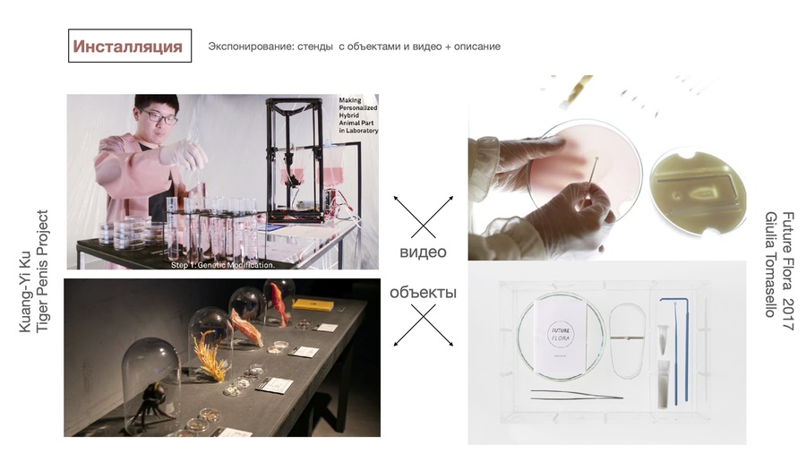 Все проекты обращаются к теме телесности и исследуют границы дозволенного- табуированного, стыдного-приемлемого, красивого-уродливого, личного-политического, опасного-безопасного, человеческого-нечеловеческого, искусственного-естественного.