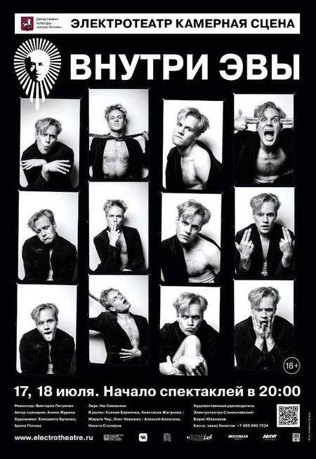 Какой была бы «Чайка», если бы Чехов написал её сегодня? Что это за история и о чем она, во времена «постмодернизма, феминизма и новой демократии»? В центре сюжета Костя, возможно, Треплев, и Эва, возможно, Аркадина. Между ними, как в калейдоскопе, развиваются новые отношения в новых обстоятельствах. Рассуждая на эту тему, авторы «Внутри Эвы» создают версию, в которой зрителю предоставляется возможность выбрать свой собственный ракурс повествования. Спектакль разыгрывается одновременно в двух пространствах: на камерной сцене Электротеатра и в примыкающей к ней гримерке.