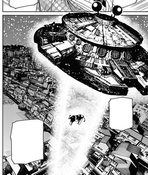 В манге (в аниме дизайн поменяли) присутствует фрагмент с огромным космическим кораблем, принадлежащим инопланетянину — Криветке-сану. Своей формой он напоминает Сокол тысячелетия из вселенной «Звездных войн».