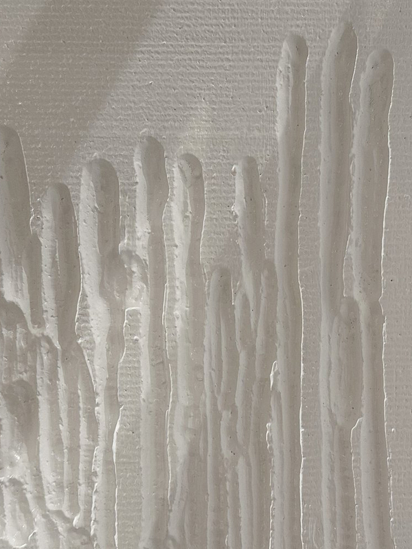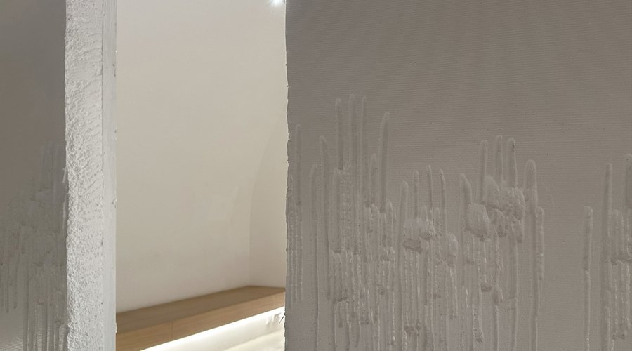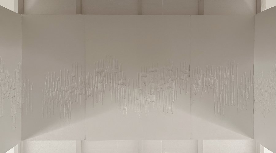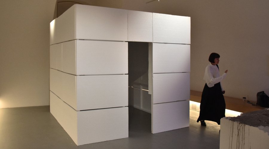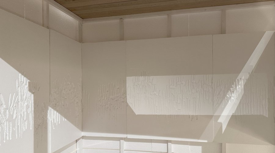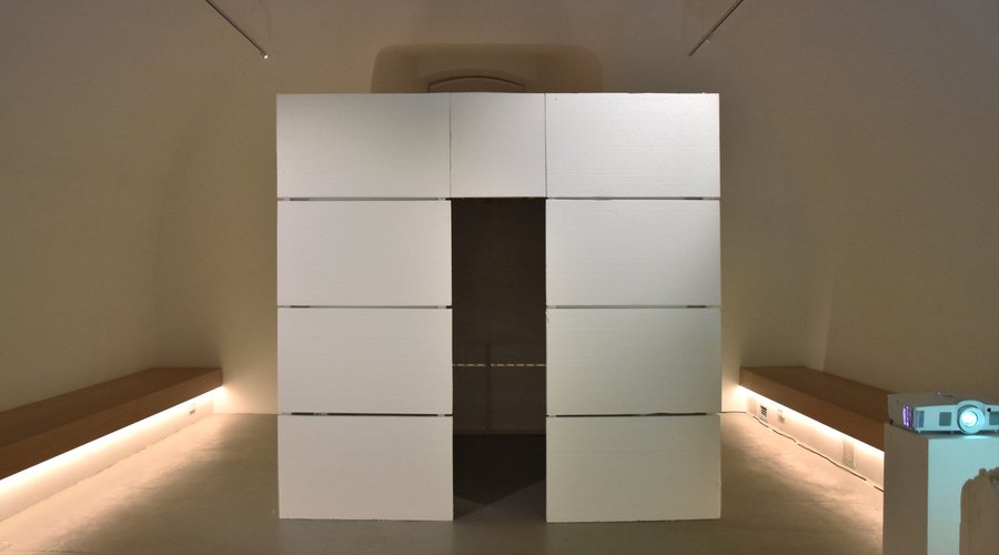 Беленые пластины рукотворны и имитируют церковный камень. Выемки станут вмятинами и едва заметной эрозией, которую я нанесу с помощью специального оборудования. Камерность я воссоздам при помощи теснящего фальш фасада с узким проемом. Алтарь потеряет прежний лик и станет упрощенной гипсовой моделью, которая соединит в себе стихийность огня и воды. С потолка польется приглушенный свет, который будет погружать в таинство. На стенах образуется проекция созвучия множеств. Таким образом, проект ответит на вопросы течения времени и истории, перенесет естество в рукотворное и механизированное.