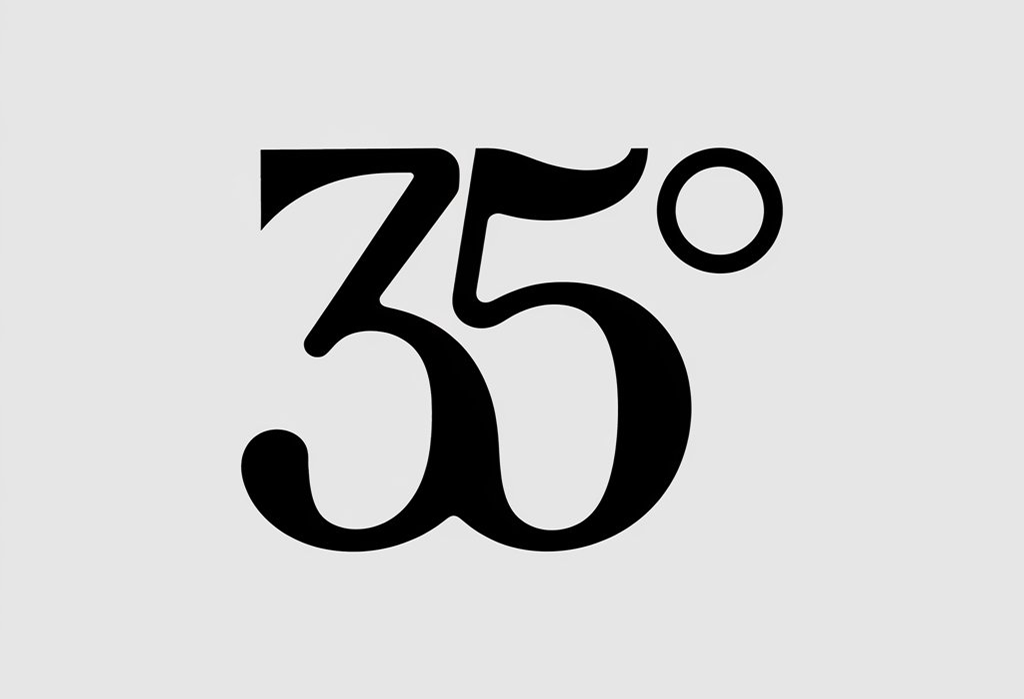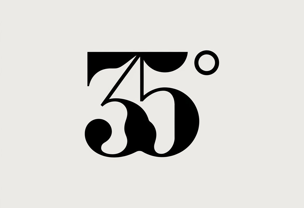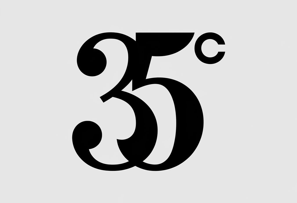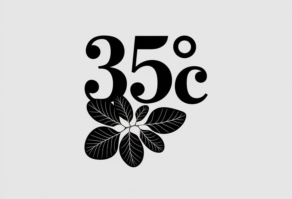 промт: type logo for 35°C, a botanical brand, in a radical monochrome style. Black-and-white, inspired by scientific botanical engravings. Sharp contrasts, precise typography, minimalism. A structured, clinical yet organic aesthetic, evoking meticulous scientific study of nature.