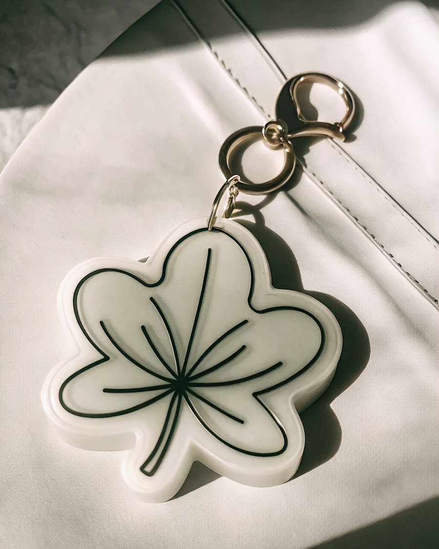 Изображения 6. 3D render of a keychain in the shape of a flower, designed for the 35°C botanical brand. The keychain should have a minimalist yet organic aesthetic, featuring smooth, sculptural lines and a monochrome black-and-white design. The flower shape should feel delicate yet structured, inspired by botanical engravings and scientific herbarium studies. The material can be matte metal, polished resin, or engraved wood, emphasizing precision craftsmanship and natural elegance. The lighting should highlight the textures and refined details of the piece.