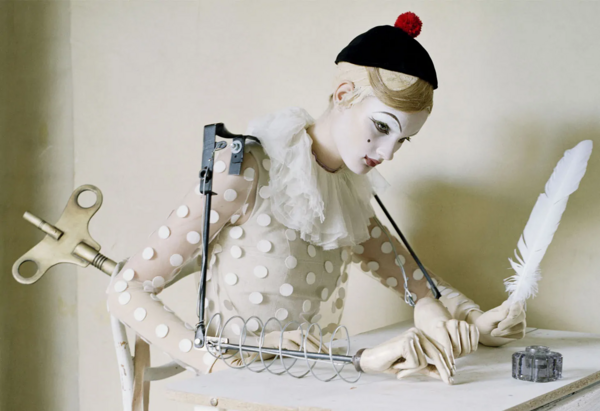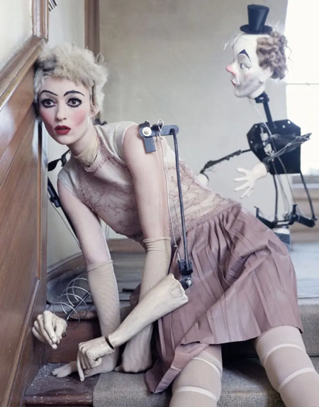 Уолкер в свою очередь переносит образ куклы в мир высокой моды, где искусственность и условность являются нормой. Модели на его снимках принимают такие же нарочитые, «кукольные» позы. Граница между живым и неживым, естественным и сконструированным стирается, заставляя зрителя задуматься о природе красоты и о том давлении, которое общество оказывает на женщин.