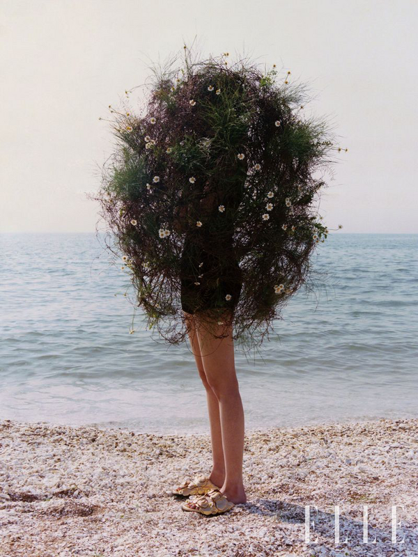 Еще одна любопытная параллель «By the Sea" в Elle Korea. Фотографы придают идее слияния женщины с природной средой более романтическое, поэтичное звучание, оставляя визуальный нарратив Мендьеты.