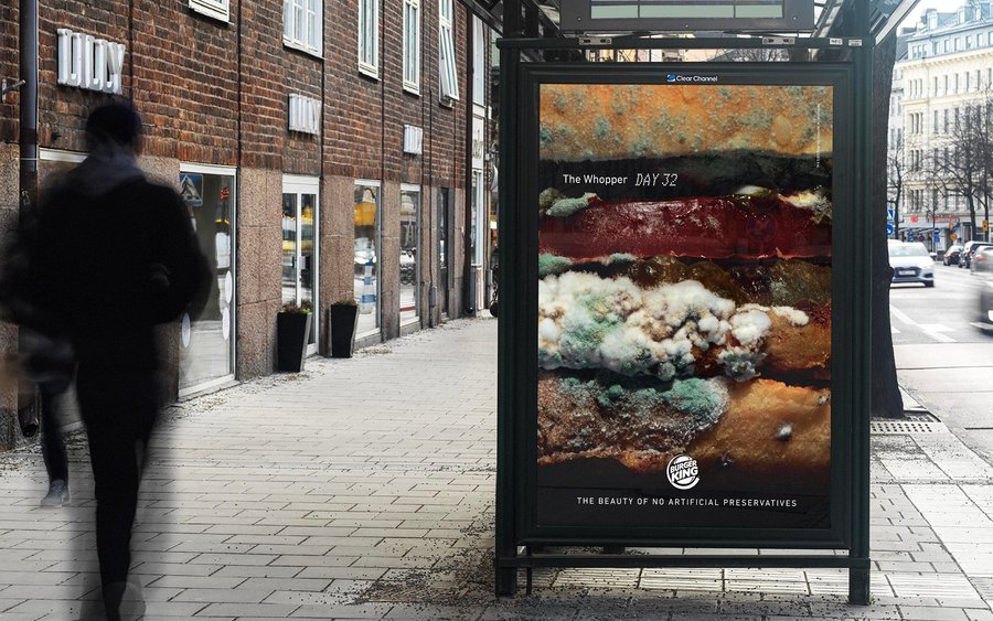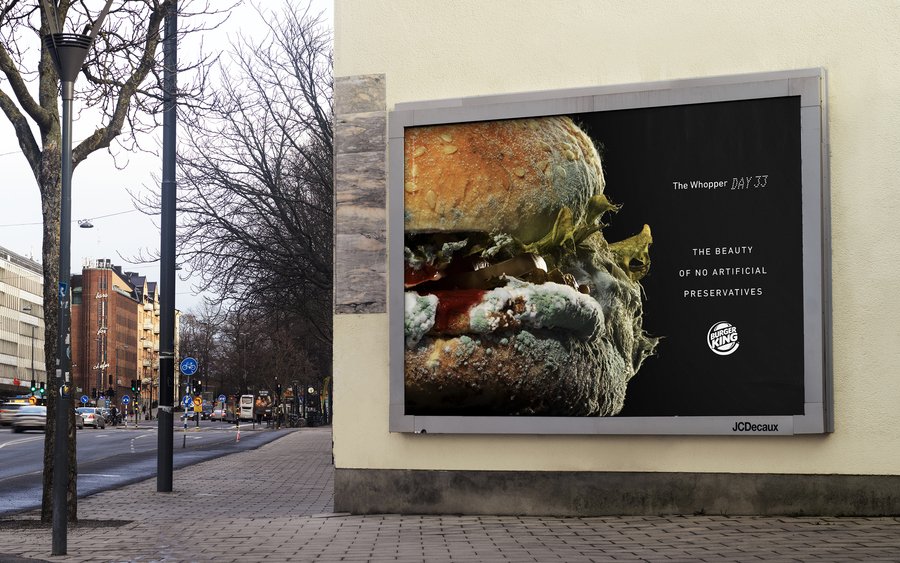 «Moldy Whopper» — кампания, показывающая разложение Whopper в тайм-лапсе, чтобы подчеркнуть отсутствие консервантов.