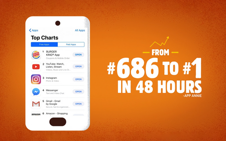 Результаты акции: - приложение Burger King стало № 1 в App Store (США) всего за 48 часов после запуска акции; - количество скачиваний приложения выросло на 1,5 миллиона; - произошёл значительный рост трафика в ресторанах Burger King; - появились тысячи публикаций в СМИ, блогах и соцсетях по всему миру