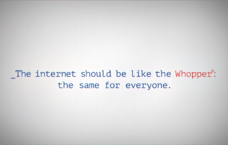 «Whopper Neutrality» — кампания, построенная на политическом и метафорическом высказывании, в которой Burger King использовал параллель между обслуживанием в ресторане и принципом сетевой нейтральности в интернете.