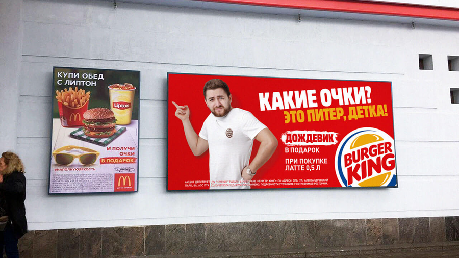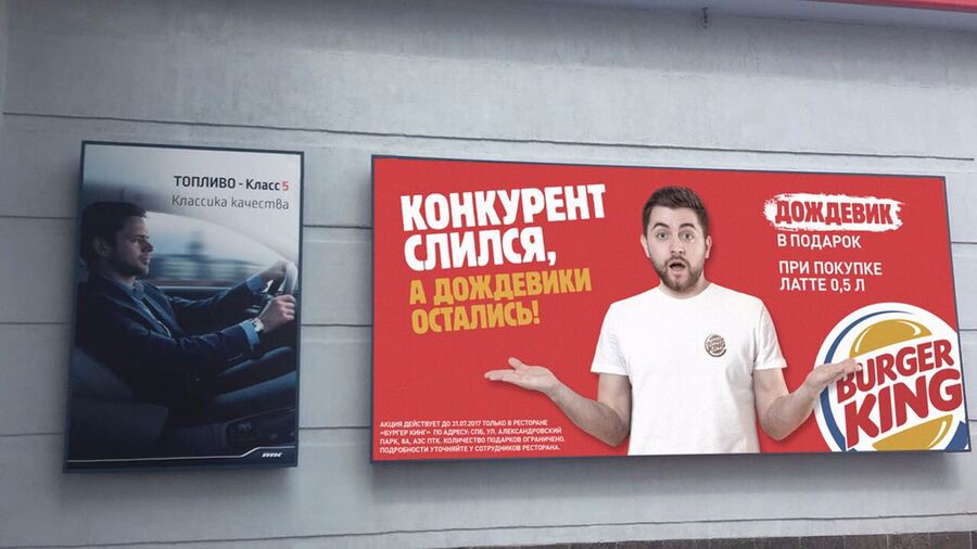 Внешняя реклама «Бургер Кинг» в рамках рекламной кампании «ПШЛНХ, МКДНЛДС», 2017
