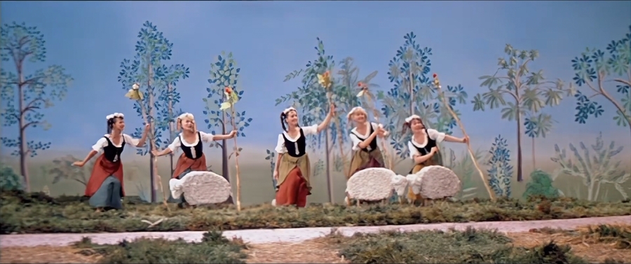 Кадры с локацией в одной палитре из фильма «Старая, старая сказка», режиссера Надежда Кошеверова
