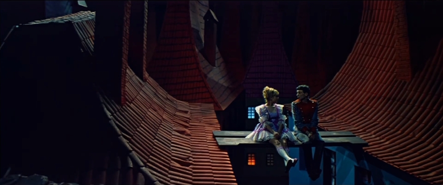 Этот фильм отличается от остальных тем, что в нем совмещается как живая актерская игра, так и кукольные постановки. Куклы и люди существуют в обоих мирах (наш и игрушечный) и взаимодействуют с друг другом. В данной картине хорошо проведена работа с интерьером, который напоминает кукольный дом. Фильм хорошо работает с цветом. Каждая отдельная локация существует со своей уникальной палитрой.