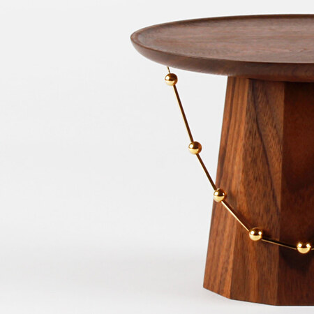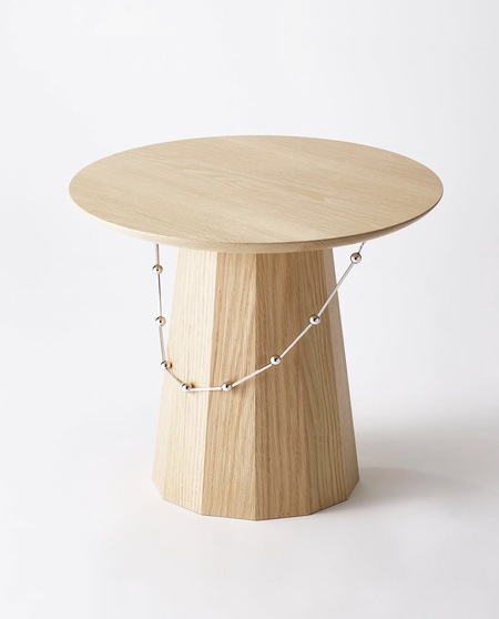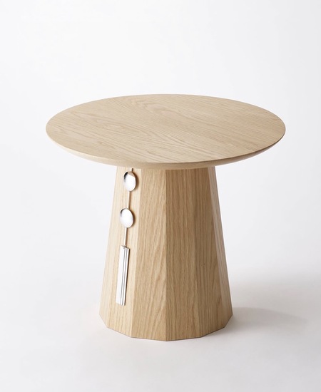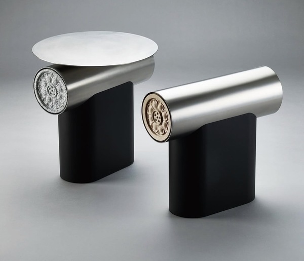 Формообразование столиков почти полностью повторяет силуэт традиционной корейской шляпы, лишь были добавлены грани в основании опорной ножки. Кроме того, в конструкции просматривается мотив бус катккын, материал которых исторически зависел от социального статуса владельца, где наиболее ценным считался нефрит.