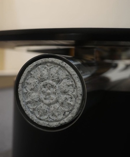 Хочется подчеркнуть, что в работах мастеров подобные решения с полностью необработанными элементами вроде камня, булыжника или дерева встречаются не так часто. Однако для корейских дизайнеров такой подход является характерным и регулярно используется как осознанный прием в формообразовании, который также отсылает к концепции Пхунсу.