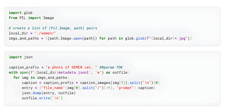 Далее с помощью BLIP к каждой фотографии из датасета были сгенерированы подписи, которые служили в качестве промтов. Это было необходимо, так как модель Stable Diffusion обучается обязательно на данных, в которых есть связки промт — результирующее изображение.