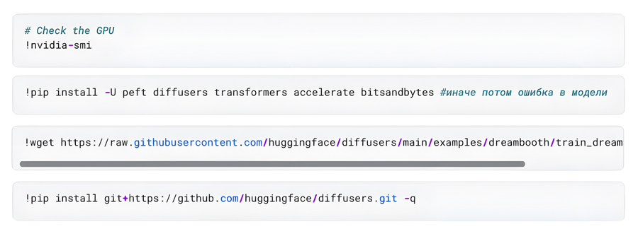 Затем происходит обучение самой модели. В параметрах задаем побольше шагов (1000), чтобы модель смогла показать результат лучше. Также обязательно передаем префикс к промтам, который у нас обязательно присутствовал в обучающей выборке.