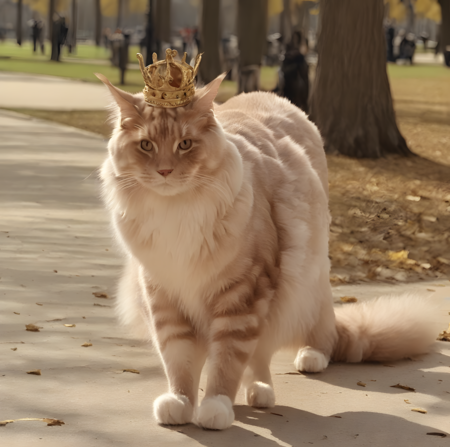 Промт 1: «a photo of SEMEN cat, cat with a crown walking in the royal park»; промт 2: «a photo of SEMEN cat, a cat sitting on a throne with a crown and looking like a royal monarch»
