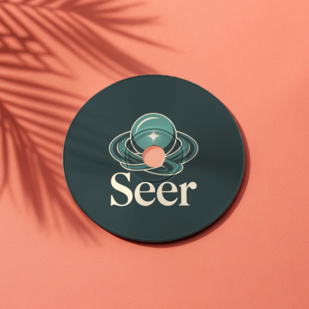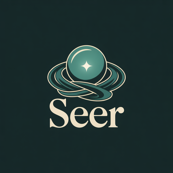 1. IdeogramAI: Create a logo for a psychological manipulation simulator called «SEER». The design should evoke mystery. The logo should feature a glowing crystal ball intertwined. The color palette is dark teal, colar, and cream white. The title should be written in a sleek, with slight arcane styling.