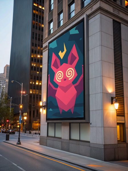 2. RecraftAI Mockup: One vertical poster displayed on a digital billboard of a building.