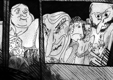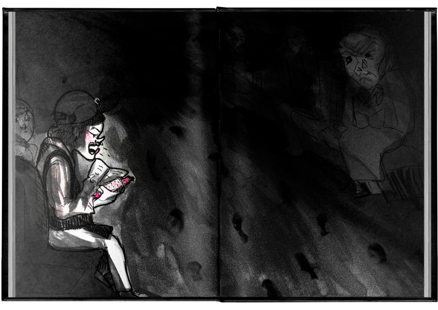 «Дно, покрытое рельсами» — это иллюстративный зин, который демонстрирует типичные ситуации в метро. Карикатурность, как прием, присутствует не только в стиле, но и в смысловой составляющей проекта.