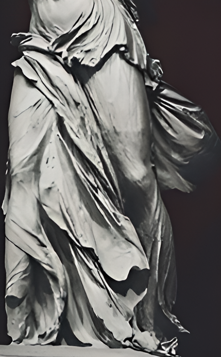 Скульптор, который создал статую «Ника Самофракийская», сделал образ, в котором ткань становится продолжением крыльев, из-за этого создаётся ощущение полёта. Тут уже нет баланса в скульптуре — напротив, драматизм, эмоции и сама жизнь.