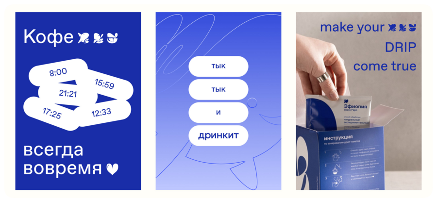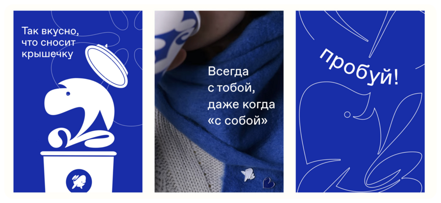 Это решение сделало коммуникации бренда цельными: куда бы ни пришёл гость — на сайт, в приложение или в саму кофейню — его встречает дружелюбный кит, задающий настроение. Айдентика российской кофейни стала известным кейсом в дизайне: минималистичная графика в фирменном синем цвете и милый кит получили положительные отклики у публики [17]. Неудивительно, что посетители стали ассоциировать бренд с чувствами тепла и позитива. Бренд — это не товар, а эмоции, которые он транслирует: «Товар удовлетворяет потребность, а бренд наделяет эмоциями. Всё, что продаётся — покупают благодаря эмоциональным историям» [15]. В случае дринкит история кита — доброго гиганта, предлагающего «выпить это» –— стала той самой эмоциональной историей, с которой люди себя ассоциируют.