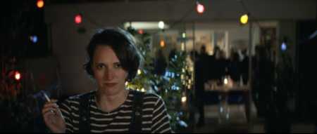 Решением становится четкое разделение моментов слома четвертой стены и остального сюжета. Получается, что из-за того, что основные события, сепарированы от моментов общения персонажей со зрителем, происходящее на экране все еще остается существовать исключительно в кадре без возможного продолжения в реальности зрителя. Еще дополнительно это усиливается редким использованием самого приема. И такое решение хорошо закрепилось в игровом кинематографе, что делает примечательной работу Фиби Уоллер-Бридж в сериале «Дрянь», где она переосмысливает такой подход к слому четвертой стены, при этом не уходя в жанры документалистики или мокьюментари.
