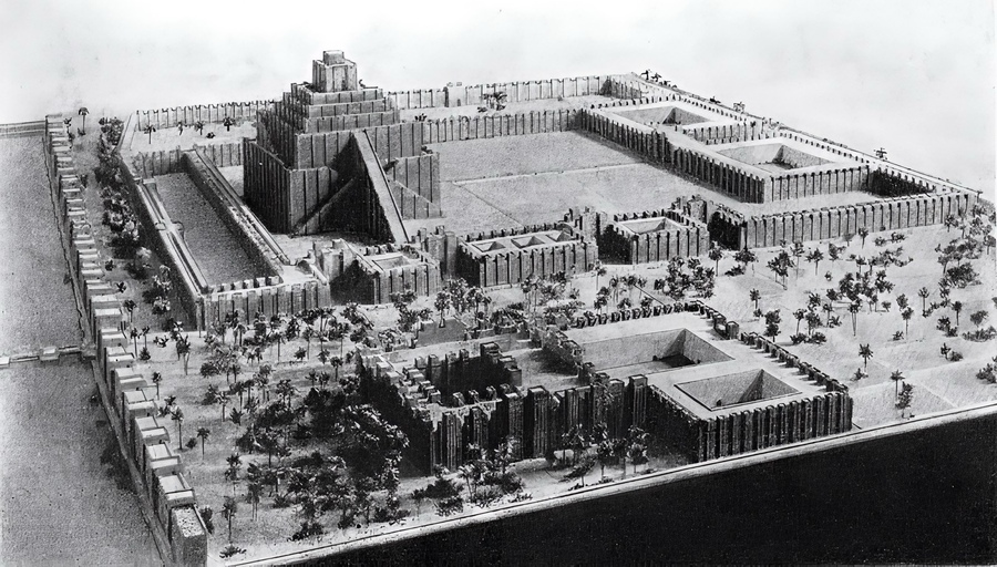 Вид на центр шумерского города Урук. Археологическая реконструкция художника Балажа Балога