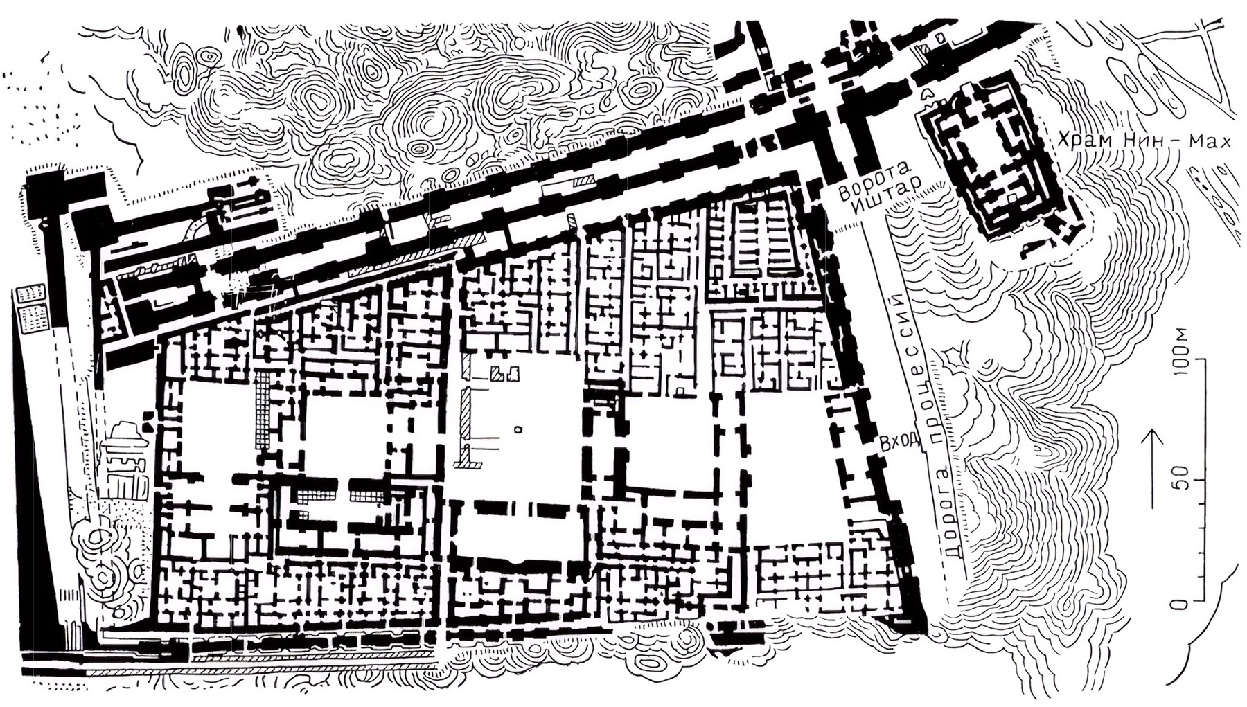 Реконструкция дворцового комплекса в Тиль-Барсипе, Ассирия, ок. VIII в. до н. э. // План дворцового комплекса в Тиль-Барсипе, Ассирия