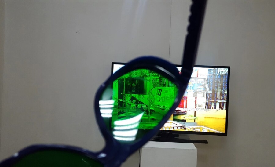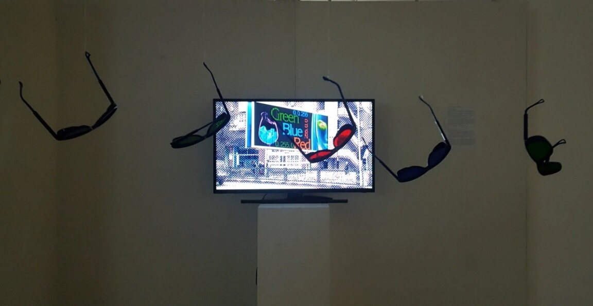 Данная работа конструирует модель многополярного мира, лишённого однозначных интерпретаций. По аналогии с тем, как одно событие получает различные трактовки в восприятии разных людей, инсталляция «RGB» демонстрирует, как идентичный видеосюжет, рассматриваемый через различные цветовые фильтры (в данном случае — цветные очки), обретает принципиально разные смысловые наполнения.