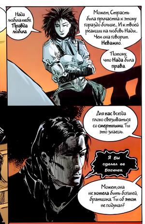 Несмотря на то, что Вечные являются своего рода сверхсущностями, их конфликты и моральные дилеммы очень человеческие: вина, любовь, гордость. Поднимается вопрос морали, эмоциональной незрелости и эгоизма. Почему Морфей наказал Наду?