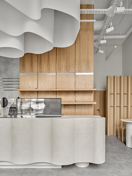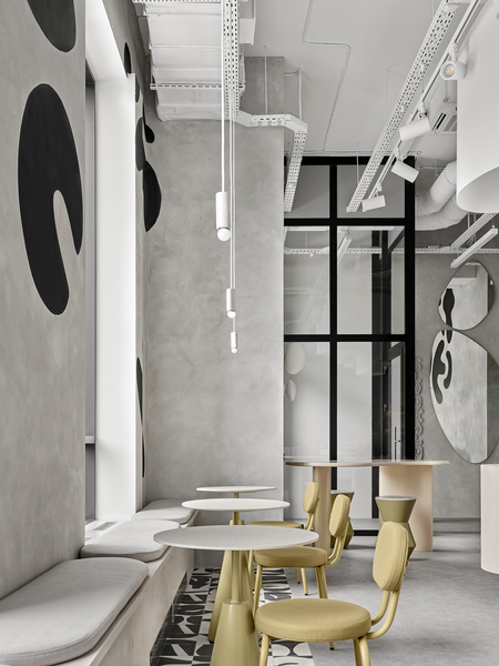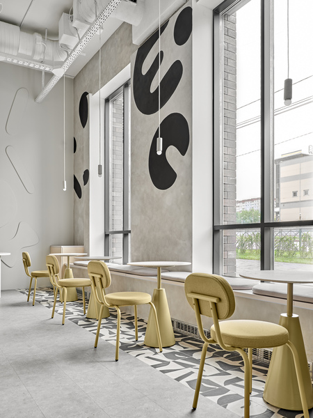 Our client is a young entrepreneur who fell in love with the bread at one of the bakeries in St. Petersburg and decided that Perm could be just as good, if not better. This was his first venture into the catering industry, and he approached it with a structured mindset, which led to a holistic concept. The main idea behind the project was to create a space where people could enjoy the experience of eating bread, conveyed through the use of color, lighting, and most importantly, shape. It was essential to ensure that every aspect of the experience, from the taste of the bread to the texture and visual appeal of the interior, would leave a lasting impression on the guest.