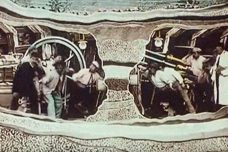 Фрагмент из фильма «Туннель под Ла-Маншем», Мари-Жорж-Жан Мельес, 1907 год.