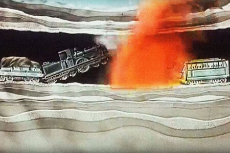 Единственным движением в кадре является белый дым, прием, что впоследствии будет использоваться многими режиссерами и аниматорами в своих кинематографических произведениях.