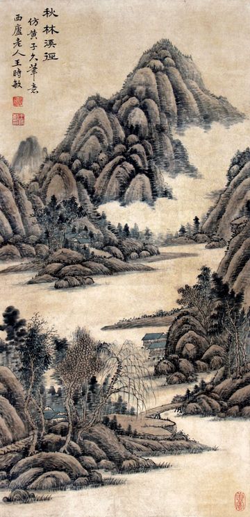 1. Ван Цзянь, «Пейзаж в стиле Цзюй Жэня» 2. Ван Шиминь, «Дорожка у ручьев в осеннем лесу»