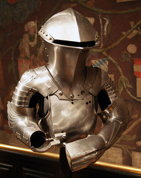 Типичный комплект также включал в себя шлем-салад, бувигер (защита подбородка), латные перчатки и часто дополнялся кольчугой для прикрытия уязвимых мест.