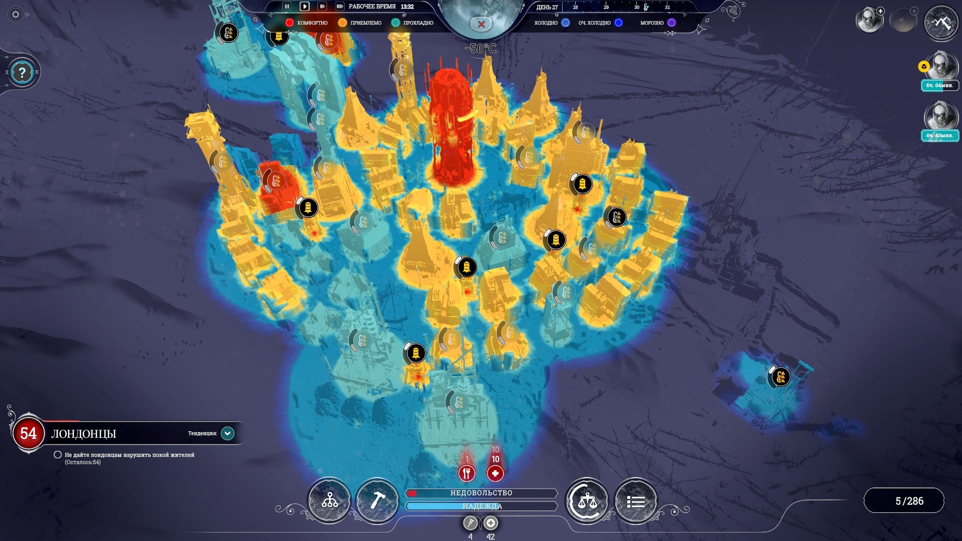 Интерфейс температурной карты из игры Frostpunk