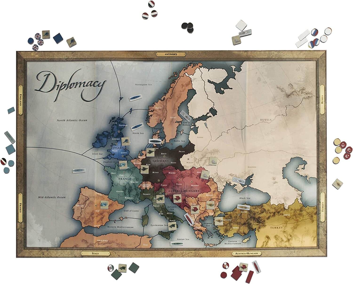 Типичная партия Diplomacy строится на обещаниях, которые почти неизбежно будут нарушены. Союзники договариваются о совместном наступлении, обсуждают делёж территорий, а затем один из них внезапно переходит на сторону врага. Этот момент предательства становится кульминацией партии: игра обнажает, что власть в политике держится не только на договорах, но и на готовности нарушать их ради выгоды. Так настольная игра превращается в маленькую модель дипломатии XX века, где слово и доверие становятся такими же ресурсами, как армия и флот.