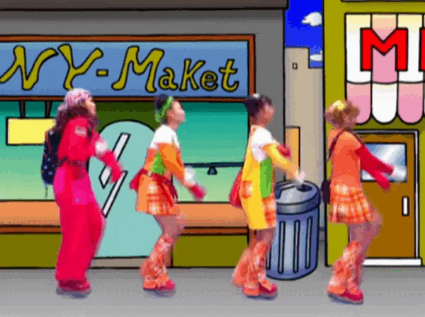 Кадры из клипа Minimoni — «Jankenpyon!» (реж. Keiichi Kobayashi, 2001 г.)