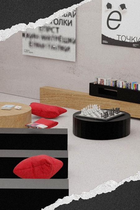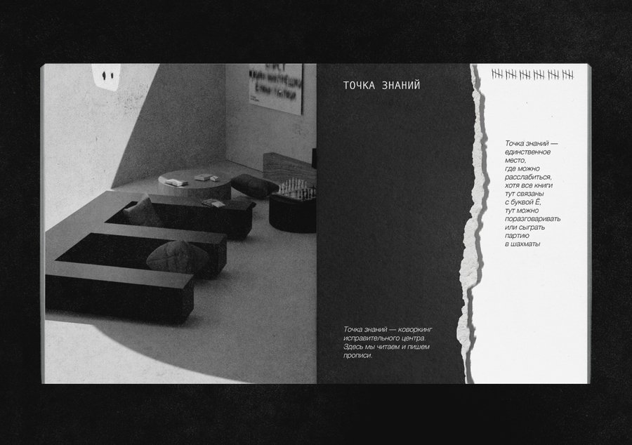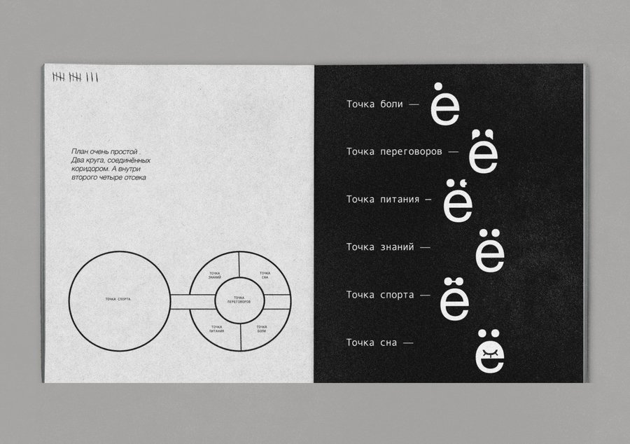 Исправительный центр буквы Ё ведёт контроль за людьми, которые забывают про неё. Главный корпус разделён на «точки». Каждая из них предназначена для определённого времяпрепровождения.