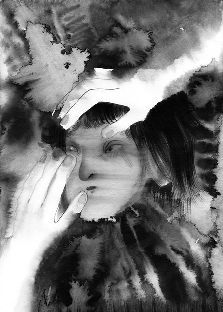 Тушь не является для меня привычным материалом, в последнее время я в основном рисую, используя диджитал инструменты, поэтому процесс работы над серией показался увлекательным. Краска ведет себя непредсказуемо, в особенности, при использовании техники рисования по мокрой бумаге. Я поняла, что для меня было важно отчасти отпустить контроль при создании иллюстраций, потому что это как-будто сильнее вовлекает в работу, которая в какой момент становится похожей на игру. Мне показалось, что подобные ощущения я испытывала в подростковом возрасте, когда рисование было творческим, а не автоматизированным процессом.