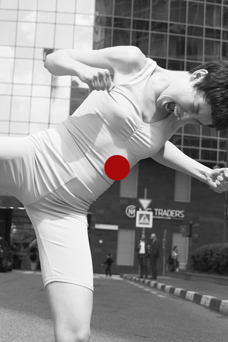 В качестве основы для фотосерии и нарратива я выбрала рисунок боевого ката «Пинан Соно Го» из каратэ, стиль «Киокушинкай». Движения из ката также показывают борьбу героини с ее страхами. Красные точки на теле девушки отсылают нас к учебнику боевых искусств и медицины, где такими обозначениями показывают наиболее уязвимые или важные места человеческого организма, места, куда следует бить, чтобы сразить противника. В моем проекты красные точки — это страхи, наши болевые участки, наиболее открытые для поражения. Каждое движение из ката = победа над одним из страхов. Таким образом, в начале нарратива моя героиня имеет большое количество страхов (красных точек), но к концу исполнения ката ей удается их побороть.