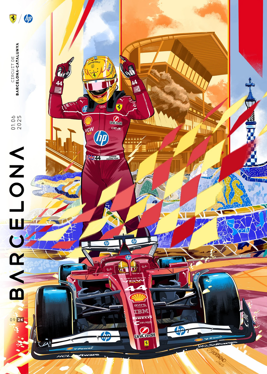 Постеры от Ferrari к Гран-при Барселоны и Гран-при Монреаля, 2025